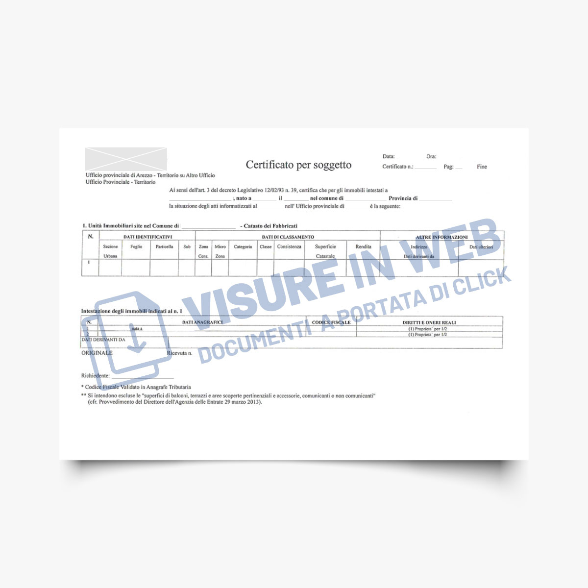 Al pari di una visura catastale il certificato consente di accertare se su un soggetto iscritto risultino beni immobili oppure di acquisire i dati identificativi o di rendita degli stessi così come depositati presso il Catasto.