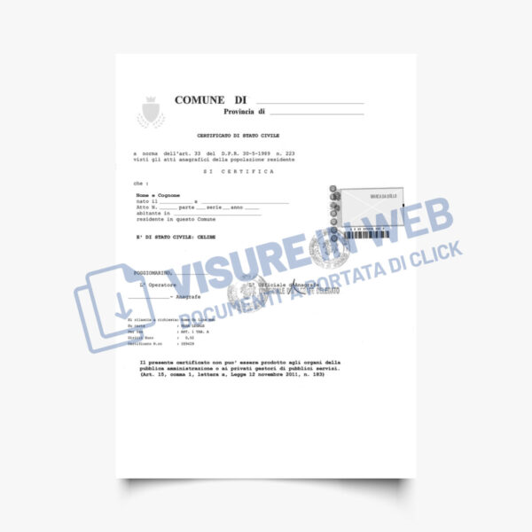 Il certificato di stato libero attesta lo stato attuale della persona di cui contiene i dati anagrafici cioè celibe, nubile, divorziato o vedovo.