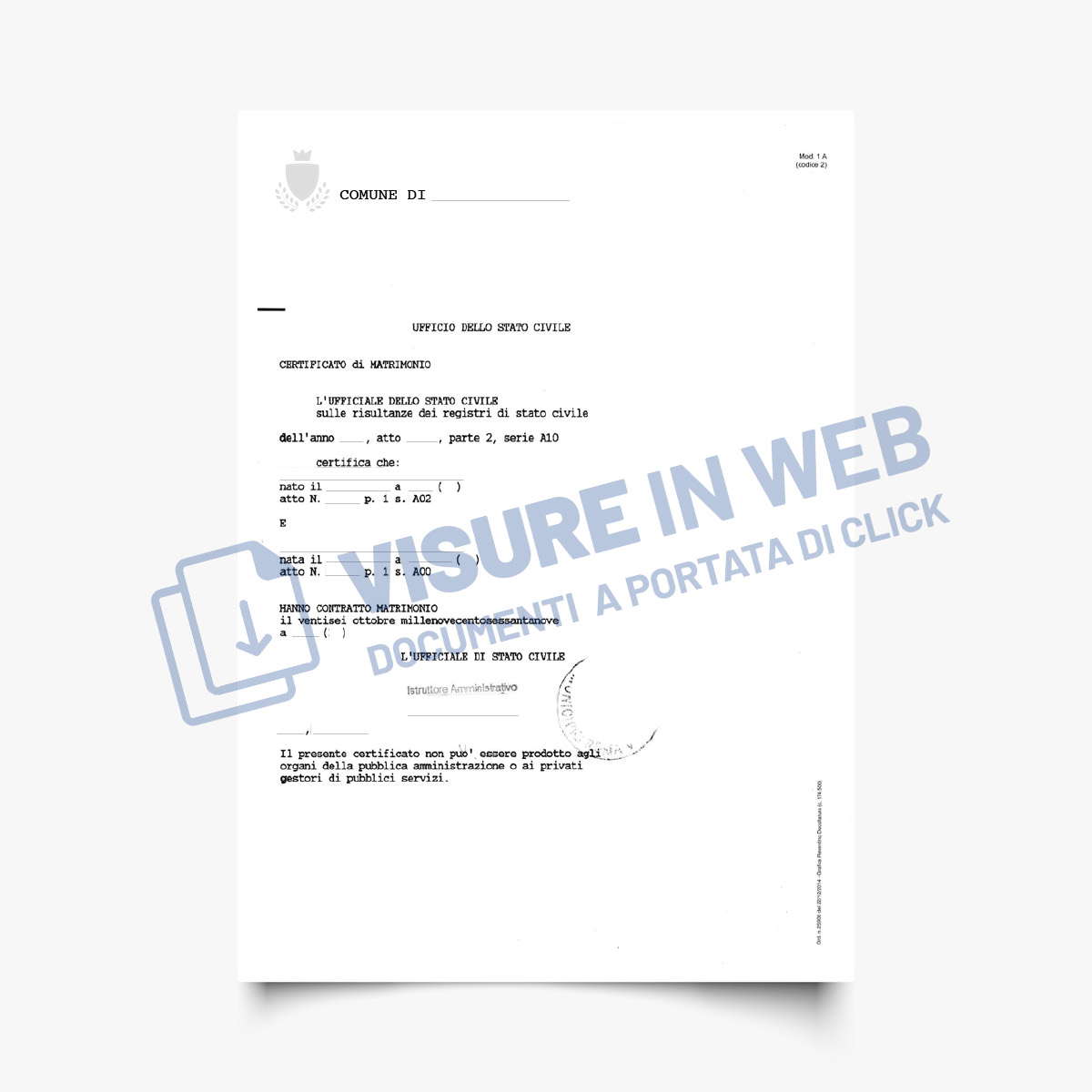 Se, invece, si vuole una procedura più veloce e semplice, si può utilizzare il servizio di VisureinWeb che, tramite questa pagina, permette di scaricare il certificato di matrimonio in pochi semplici click.