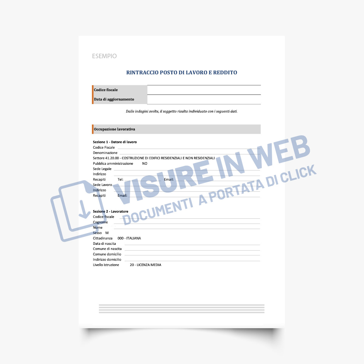 Servizio volto a verificare l’attività lavorativa prestata dal soggetto, sia essa autonoma sia da lavoro dipendente e/o pensione con specifica dell’ente erogante,