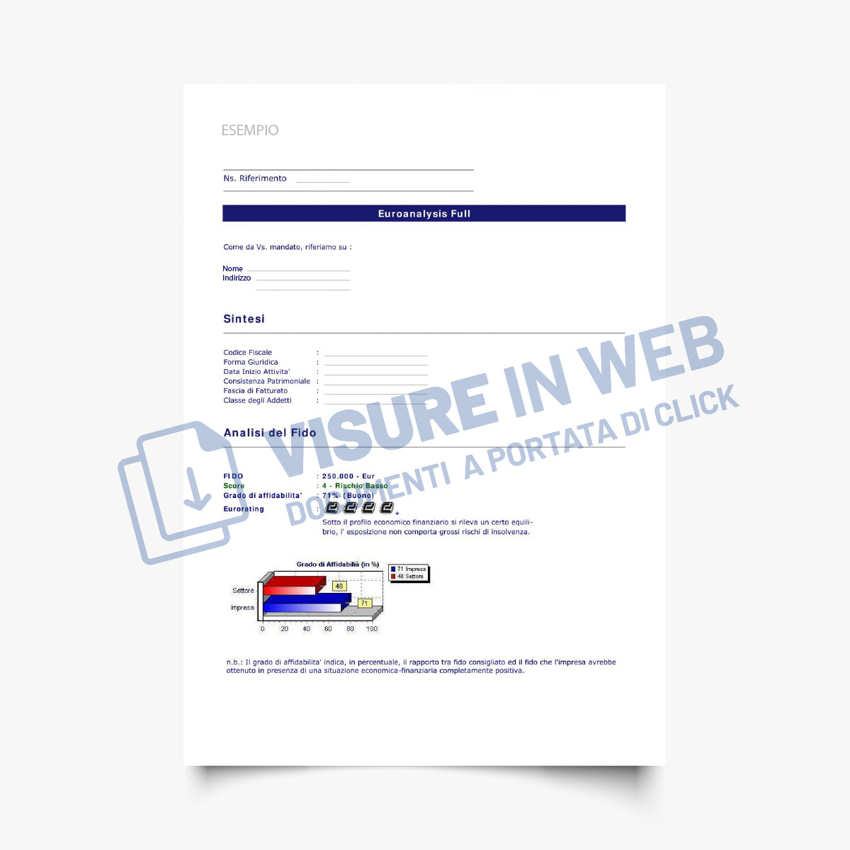 Il servizio consente la verifica dell’affidabilità di un’impresa attraverso la raccolta e l’analisi delle principali informazioni provenienti dai registri pubblici riguardanti l’azienda, i suoi amministratori, i soci e le imprese connesse, integrate in un quadro completo, con evidenza della situazione economico finanziaria e degli eventi negativi e particolare focus sulla capacità di far fronte ai debiti a breve contratti con i fornitori.
