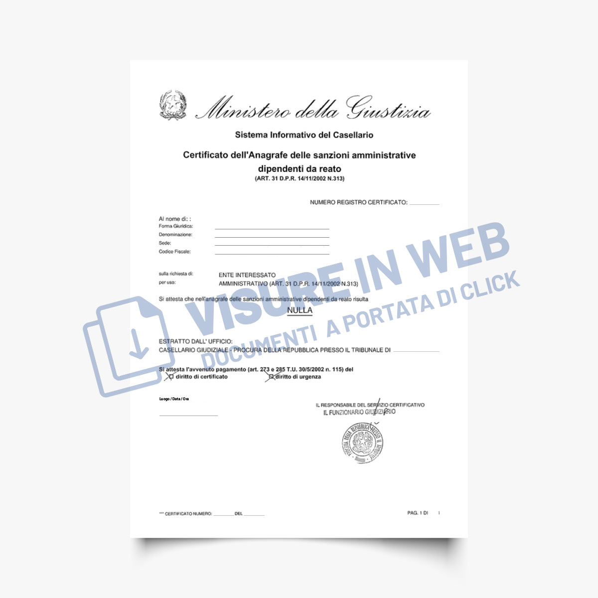 Il certificato delle sanzioni amministrative dipendenti del reato viene generalmente richiesto per la partecipazione a gare da parte di imprese e la registrazione all’albo fornitori di grandi aziende o multinazionali.